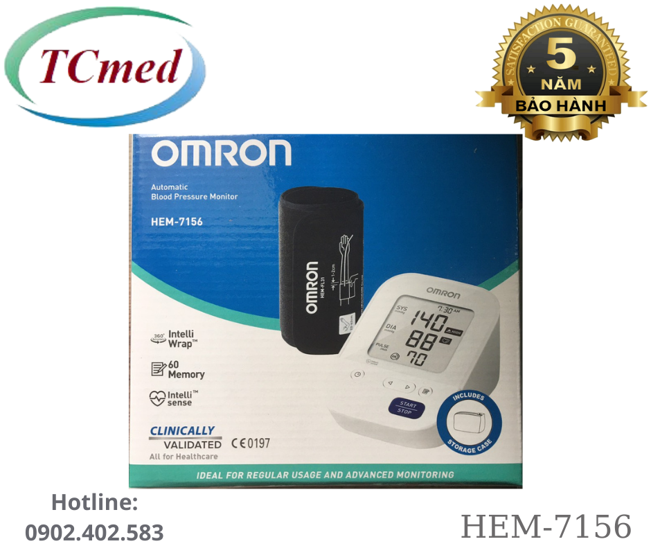 Máy đo huyết áp điện tử bắp tay Omron Nhật Bản HEM- 7156 công nghệ Intellisense với vòng bit tạo khuân, huyết áp trung bình 3 lần đo, lưu 60 lần đo, có chứng nhận về độ chính xác.
