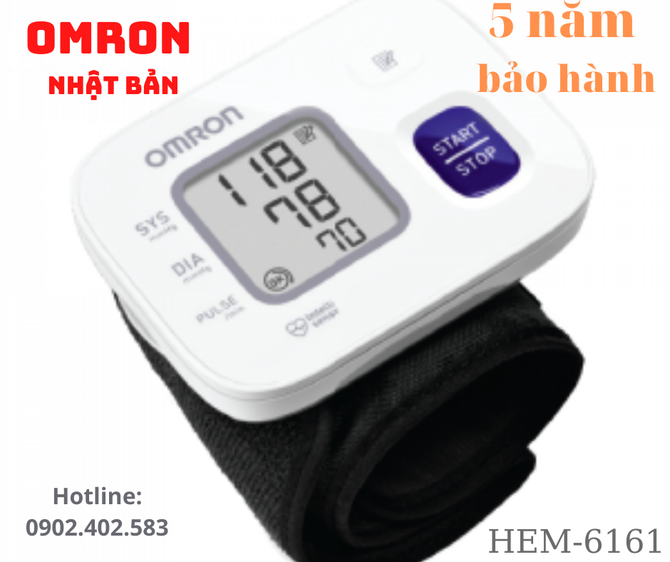 Máy đo huyết áp điện tử cổ tay Omron HEM-6161 dòng cơ bản, tiết kiệm chi phí, đo chỉ số huyết áp tối đa, chỉ số huyết áp tối thiểu và nhịp tim, bảo hành 5 năm.